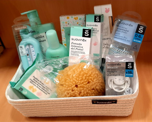 Creació i decoració de cistelles personalitzades amb productes per a nadons i mares.